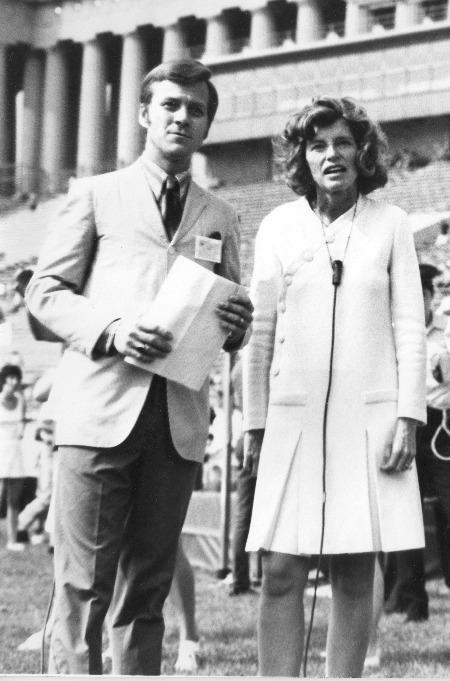 Bob Hale und die weltweit berühmte und verehrte Eunice Kennedy Shriver bei der Eröffnung der Special Olympics am 19. Juli 1968 auf dem Soldier Field in Chicago.