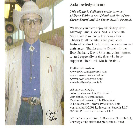 Dave Tobin aus England lebte seinen Traum. Die letzten Jahre seines Lebens verbrachte er in Lubbock, Buddy's Geburtsstadt, wo er unter anderem gute Dienste im Buddy Holly Center leistete. Der Tribute-Song "BUDDY MY FRIEND" stammt aus seiner Feder.