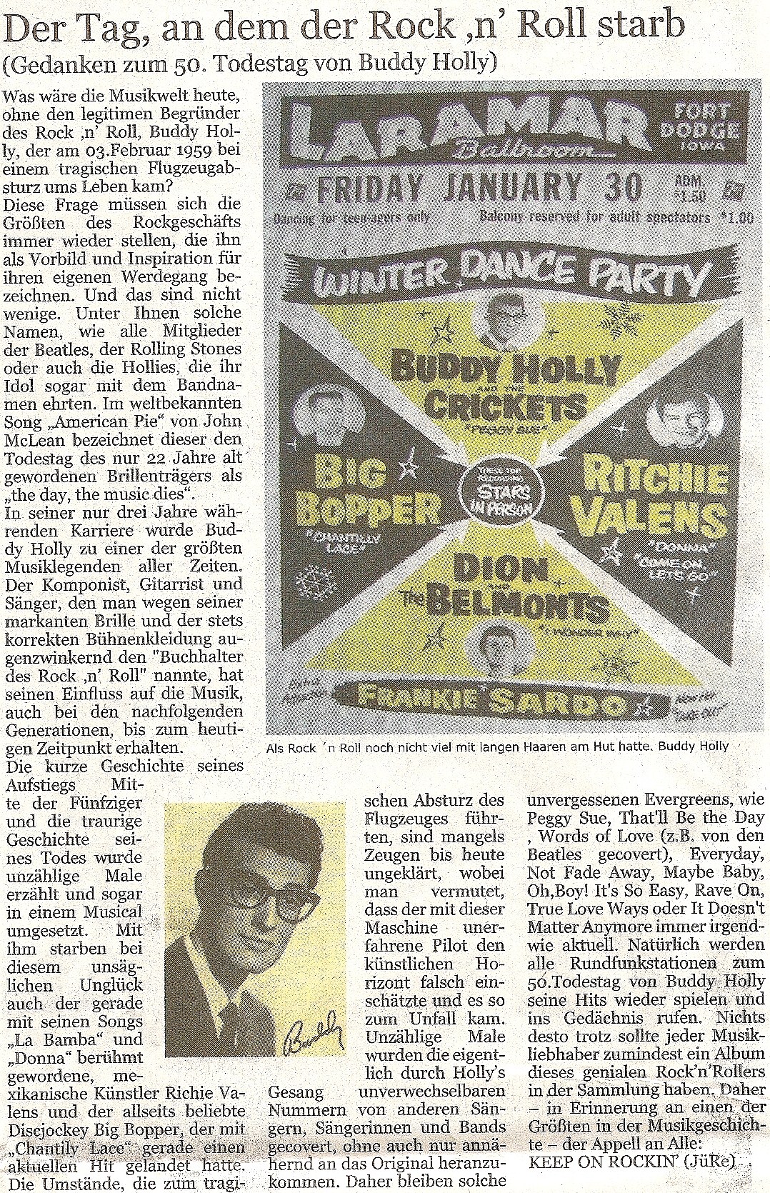 Ein Artikel über den 50. Todestag von Buddy Holly