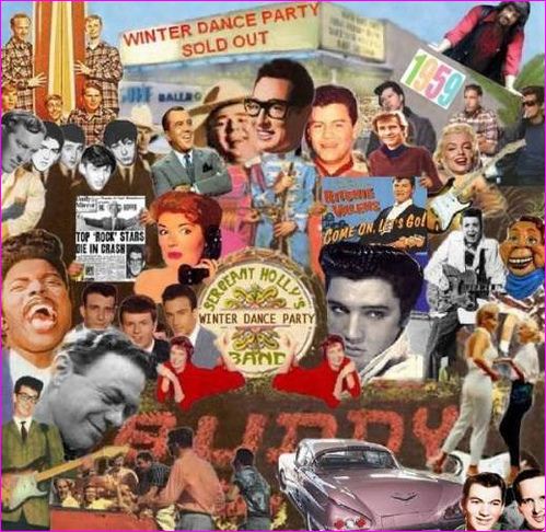 Winter Dance Party / Buddy Holly patchwork by an unknown artist. This collage reminds me of the Beatles' Sergeant Pepper Album.