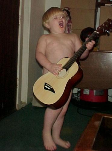 While I was doing my set, George Tomsco (lead guitarist for the Fireballs) was nearby on stage with a young boy- 2 or 3 years of age- who was pretending to play guitar.