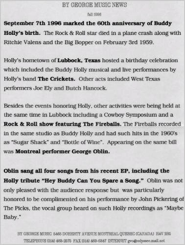 Am 7. September 1996, also an Buddy Holly's 60. Geburtstag, stellte George Oblin