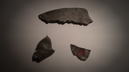 One of the fragments has red gloss paint on the surface.