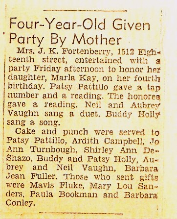 By the end of 2009 I saw a photo of Buddy Holly from 1940. Buddy was 3 years old and one of the guests of a birthday party for Marla Kay Forten- berry.