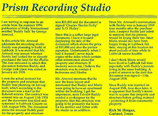 I'm responding to your request for information regarding his subsequent plans to return to Lubbock to establish a recording in a new home he had contracted with his father to build.