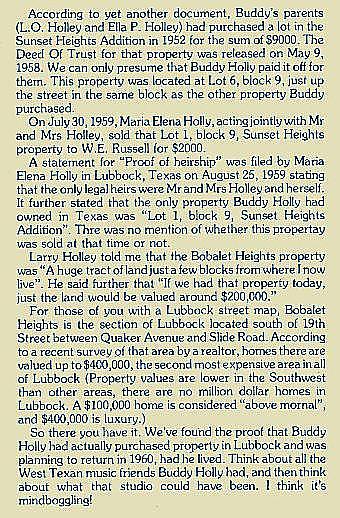 In 1958 Buddy purchased two pieces of land in Lubbock. His first