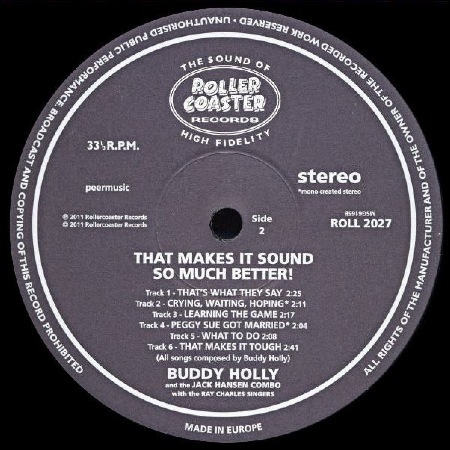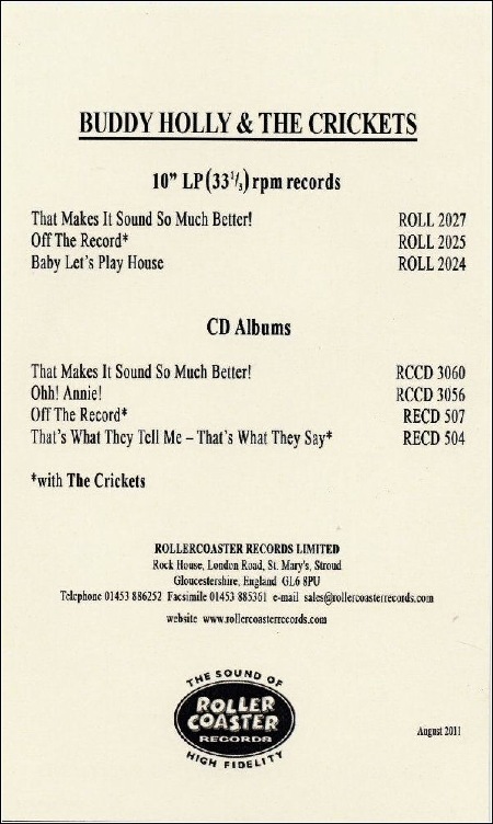 The package includes a four page information sheet, Buddy Holly & The Crickets promotional photograph with Rollercoaster discography, together with a reproduction Buddy Holly Fan Club membership card. Great value!