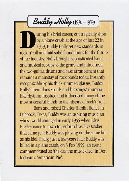 Buddy Holly Collector Card. OOPS! This is a photo colourized by my friend Peter F. Dunnet for exclusive use on my fanpages. That's the way it goes . . .
