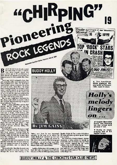 BUDDY HOLLY & THE CRICKETS FAN CLUB NEWS "CHIRPING" - ISSUE 19